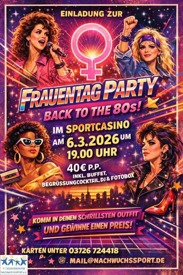 06.03.2026 Frauentagsparty im Sportcasino 80iger Jahre Party mit Buffet, Fotobox 40,00 €